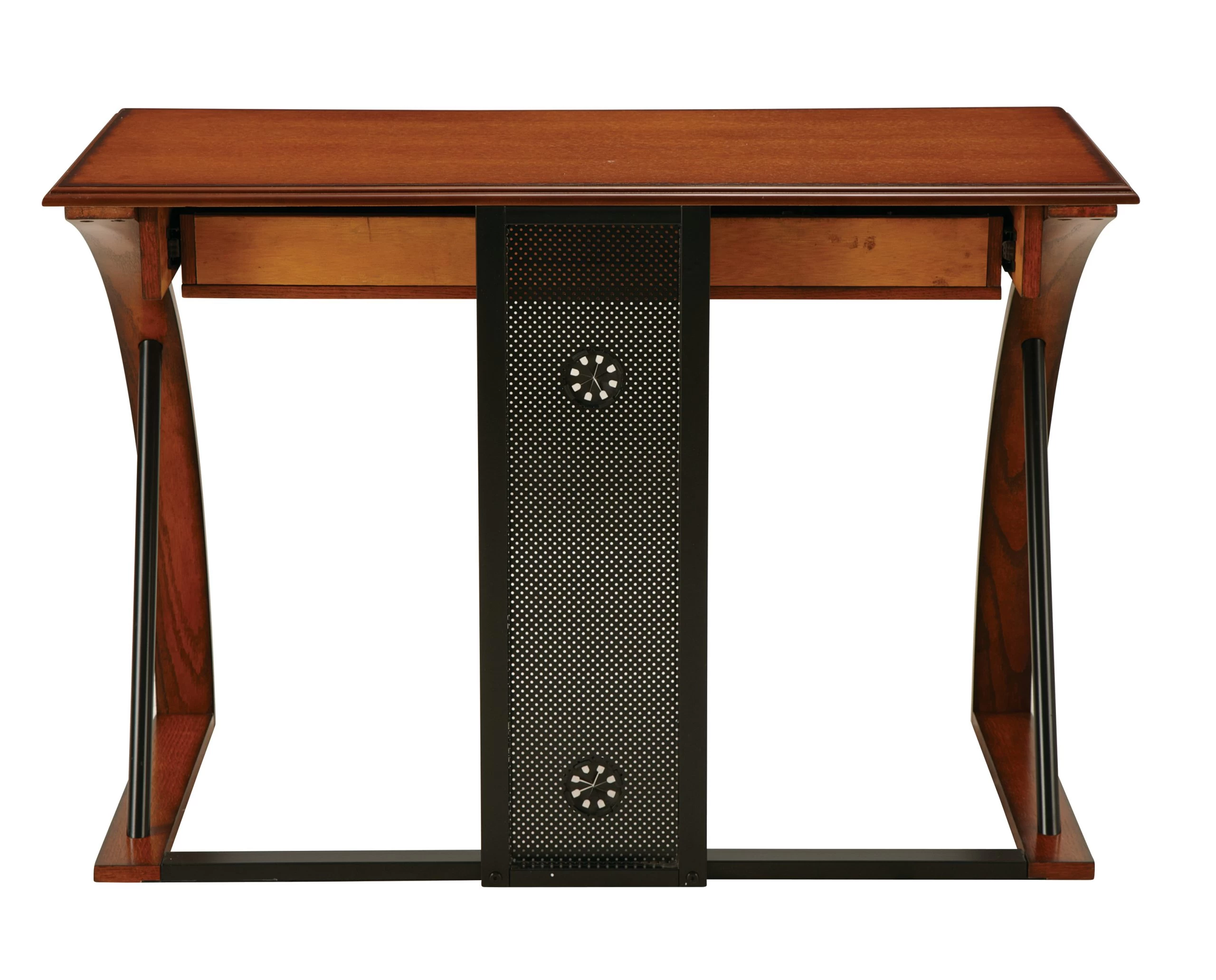 A stylish desk makes any home feel extremely grown up and oh so functional. The OSP Designs Aurora Computer Desk boasts regal design, featuring a rustic medium oak veneer with black powder coated accents to create a warm feeling throughout your home office. A pull out keyboard tray reduces surface clutter to create the perfect spot to pen your next literary masterpiece or create an awe-inspiring project flow chart. A keyboard tray allows you to store necessary desk accessories when not in use and pulls them out easily when needed. The sturdy construction and sizeable surface makes the OSP Designs Aurora Computer Desk perfect for users of varying shapes and sizes. A great first desk for students of all ages and genders, you will have this piece for years to come.