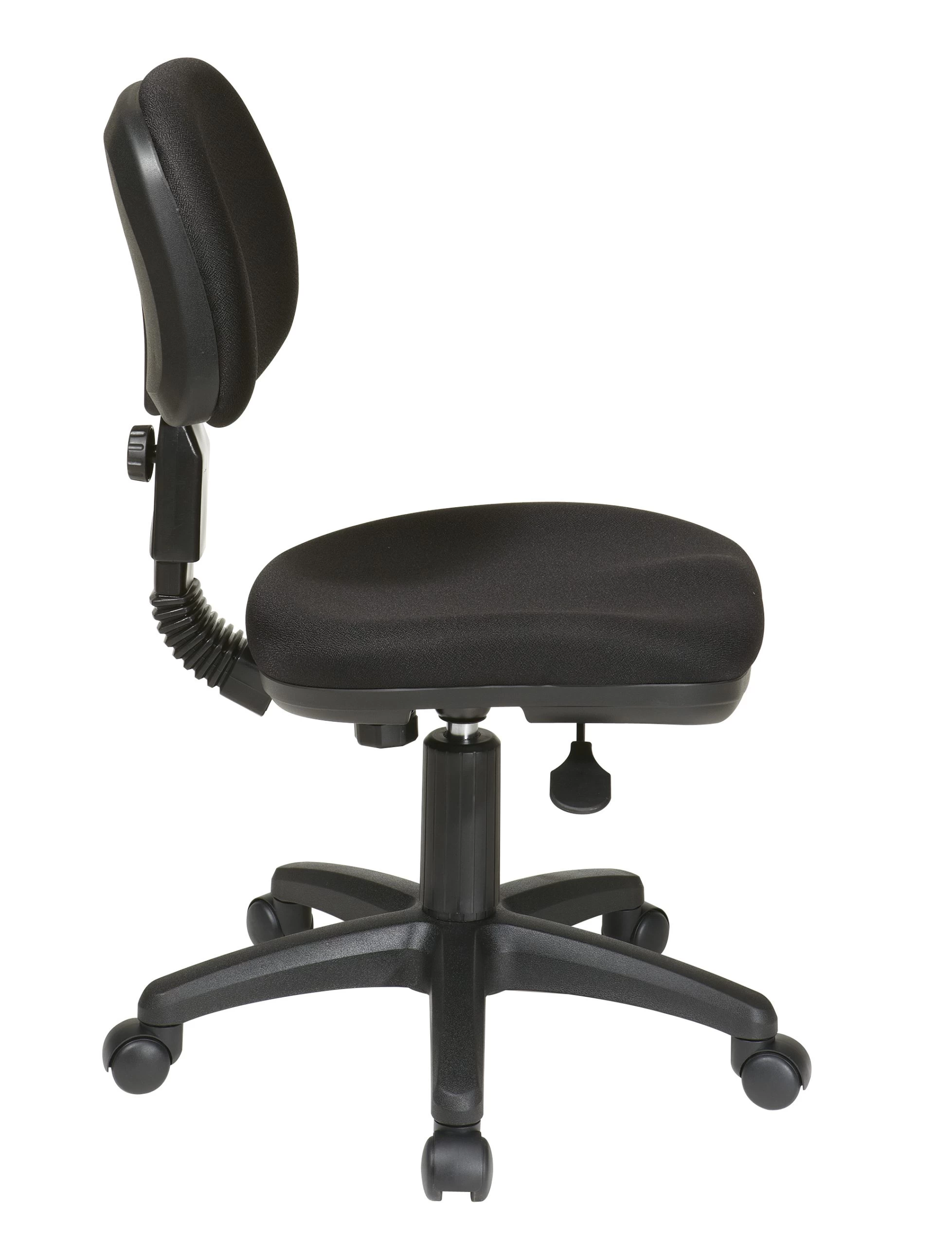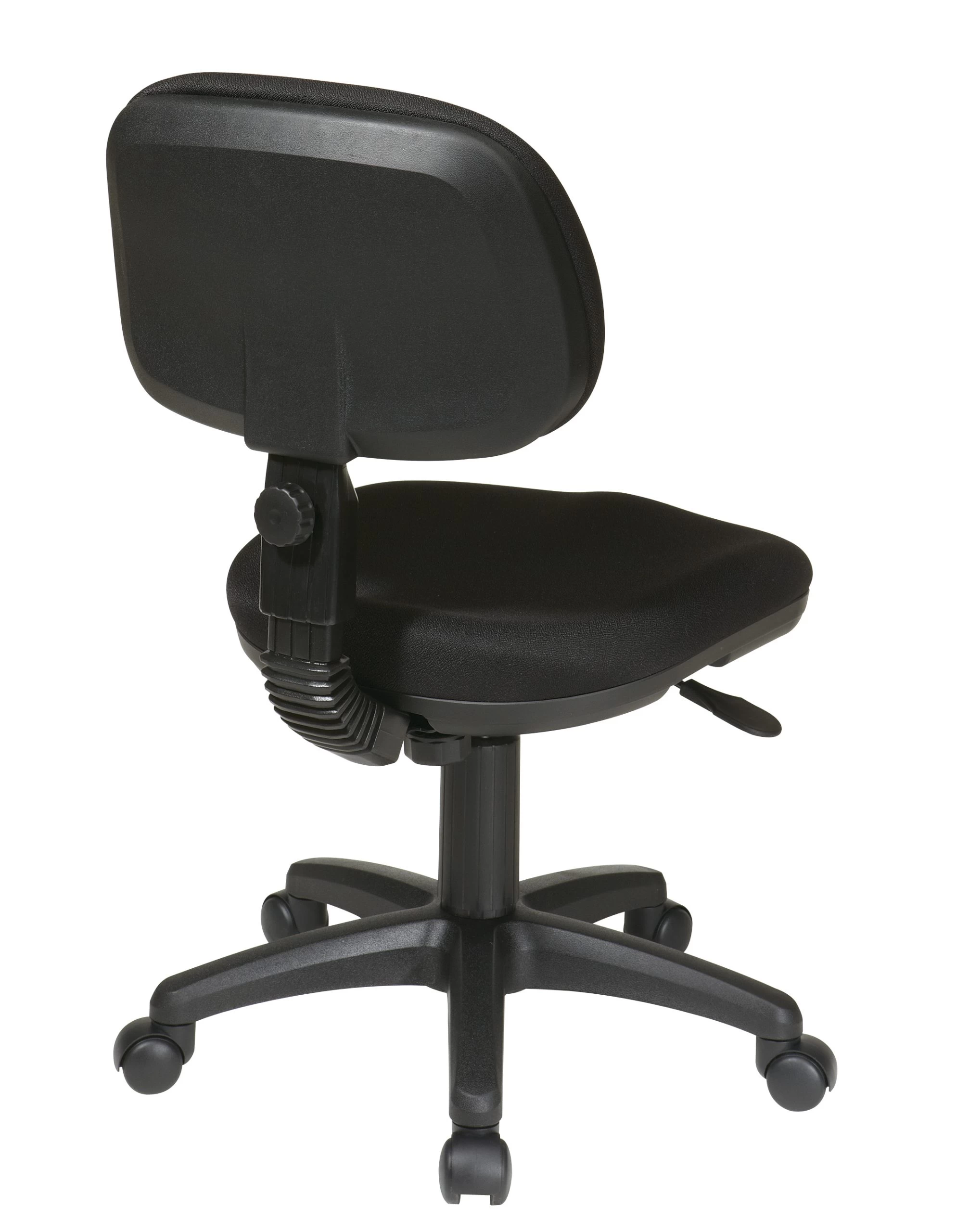 A task chair with a functional yet comfortable appeal arrives in the form of a basic task chair by Office Star. Outfitted with a one touch pressurized pneumatic seat height adjustment, 360 degree swivel, and both seat depth and back height adjustment making it truly adaptable in any setting. Coupled with the heavy duty dual wheel carpet casters and you have a versatile task chair that is as affordable as it is comfortable.