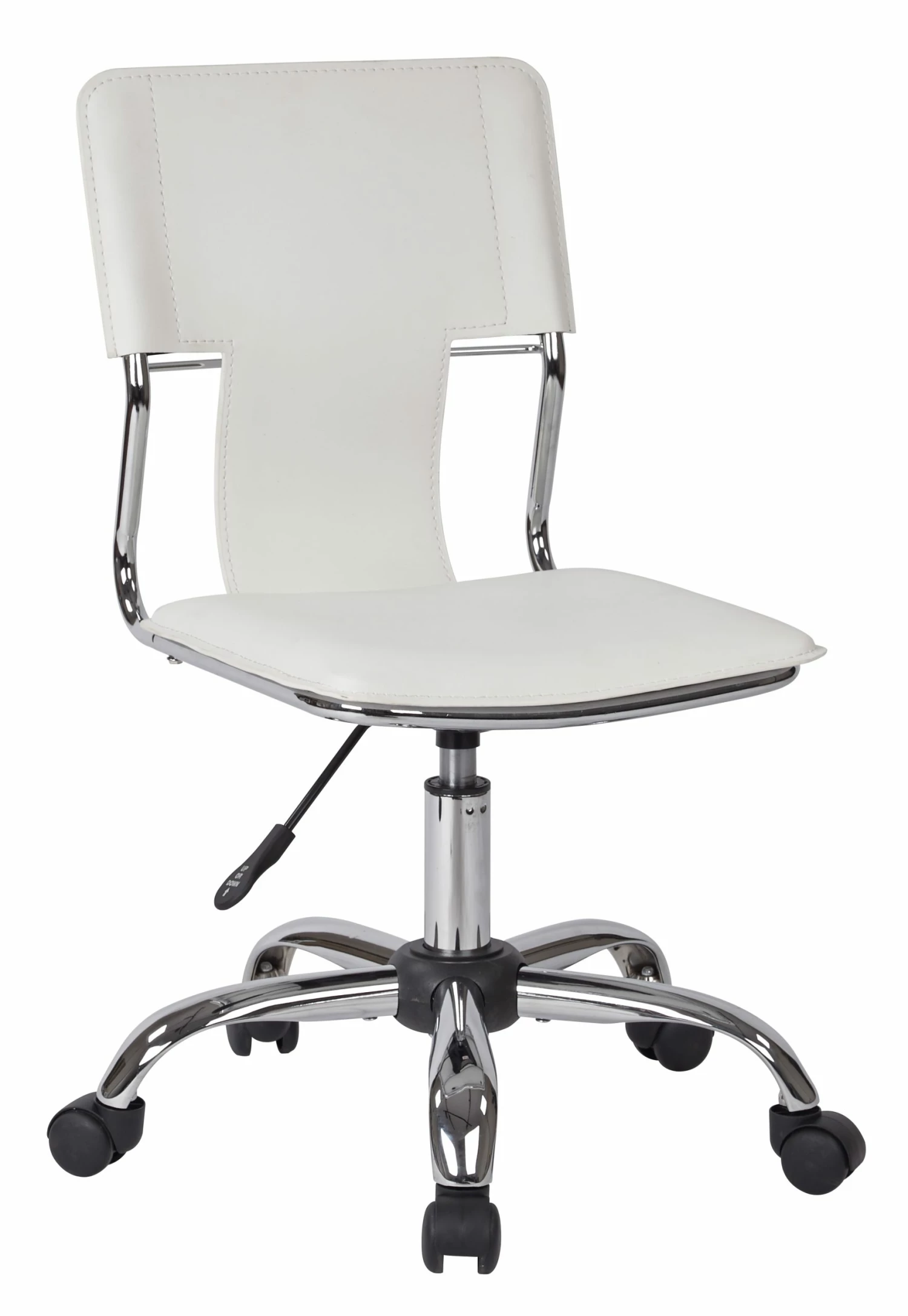Study buddy. Maximize your productivity while studying, writing papers or working on math homework from the comfort of this lightweight task chair. The seat height adjustment makes it easy to customize the chair for your needs, while the sleek chrome base with dual wheel carpet casters supports you as you carry out your studies. Create a productive homework station with the Carina student chair.