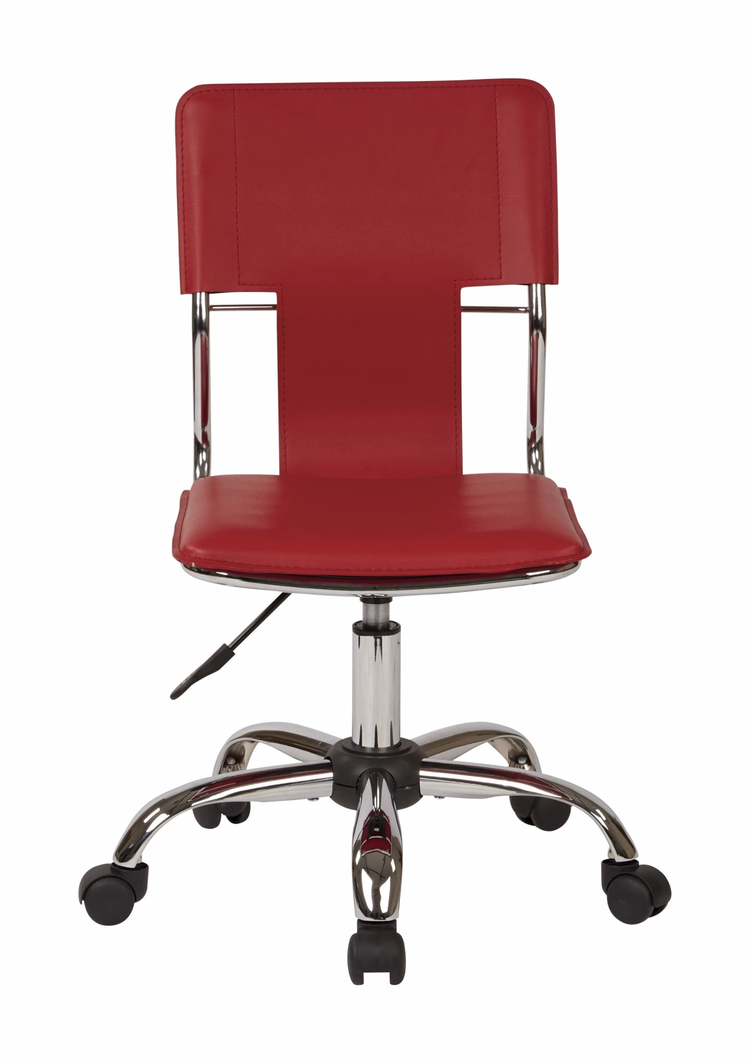 Study buddy. Maximize your productivity while studying, writing papers or working on math homework from the comfort of this lightweight task chair. The seat height adjustment makes it easy to customize the chair for your needs, while the sleek chrome base with dual wheel carpet casters supports you as you carry out your studies. Create a productive homework station with the Carina student chair.