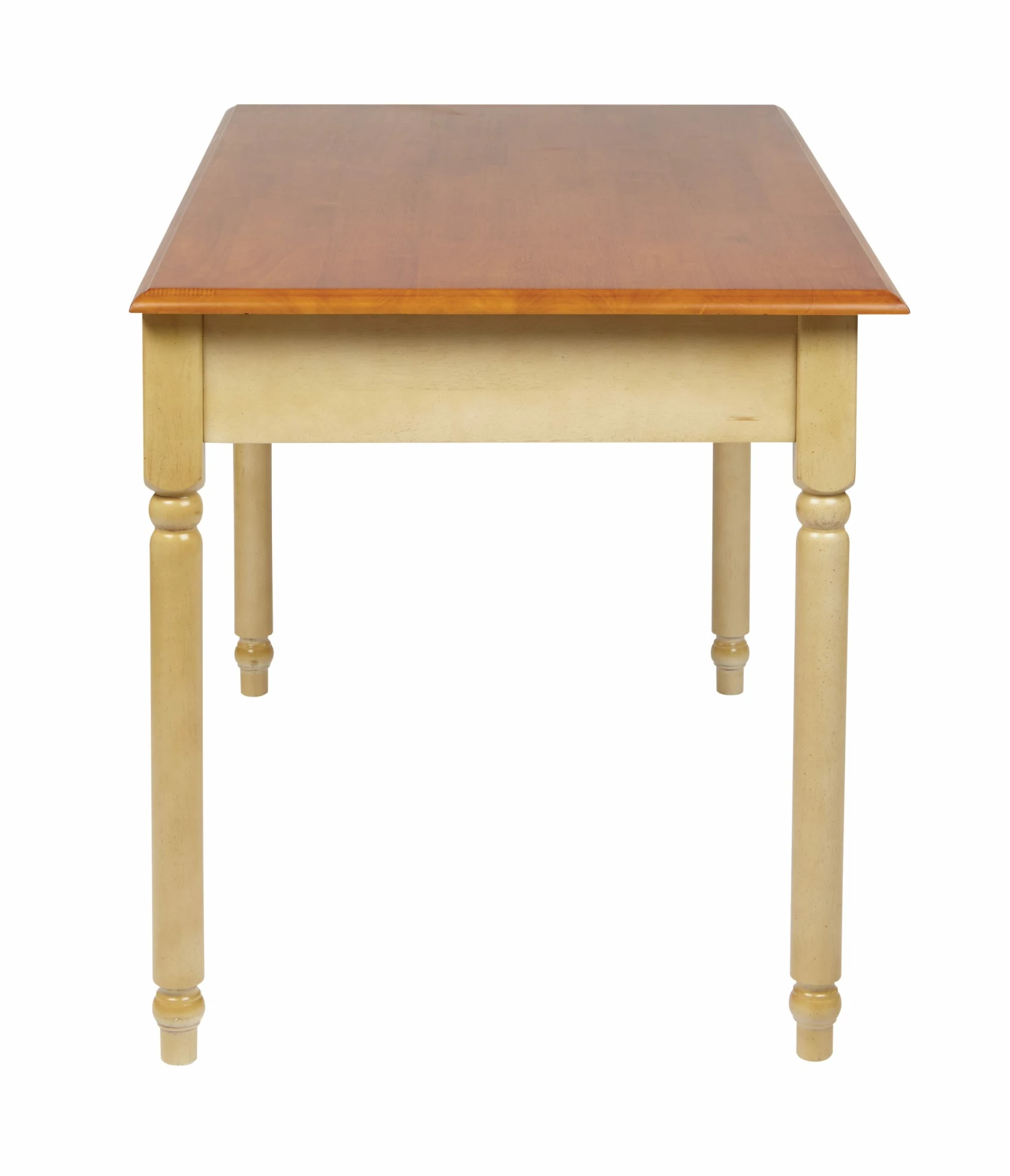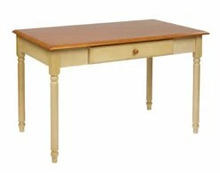 Country cottage at its finest, this dainty work desk is sure to compliment traditional and transitional styles alike. With a Country Buttermilk and Cherry wood venner, this piece will blend seamlessly into your existing décor creating a cozy ambience. This charming work station features a pull-out drawer for you to place paperwork or supplies, keeping you area tidy and organized. Contructed of high quality wood and metal hardware, this delightful piece will withstand the test of time for you and your family to enjoy. Add to cart now and start enjoying this amazing desk for years to come.