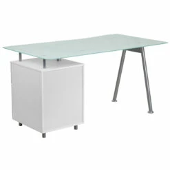 White Computer Desk With Glass Top And Three Drawer Pedestal – By Flash Furniture – Madison Seating