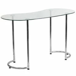 Contemporary Desk With Clear Tempered Glass And Silver Frame – By Flash Furniture – Madison Seating