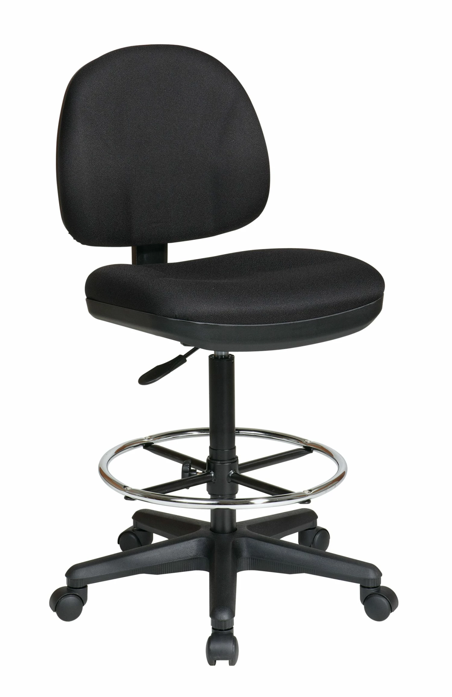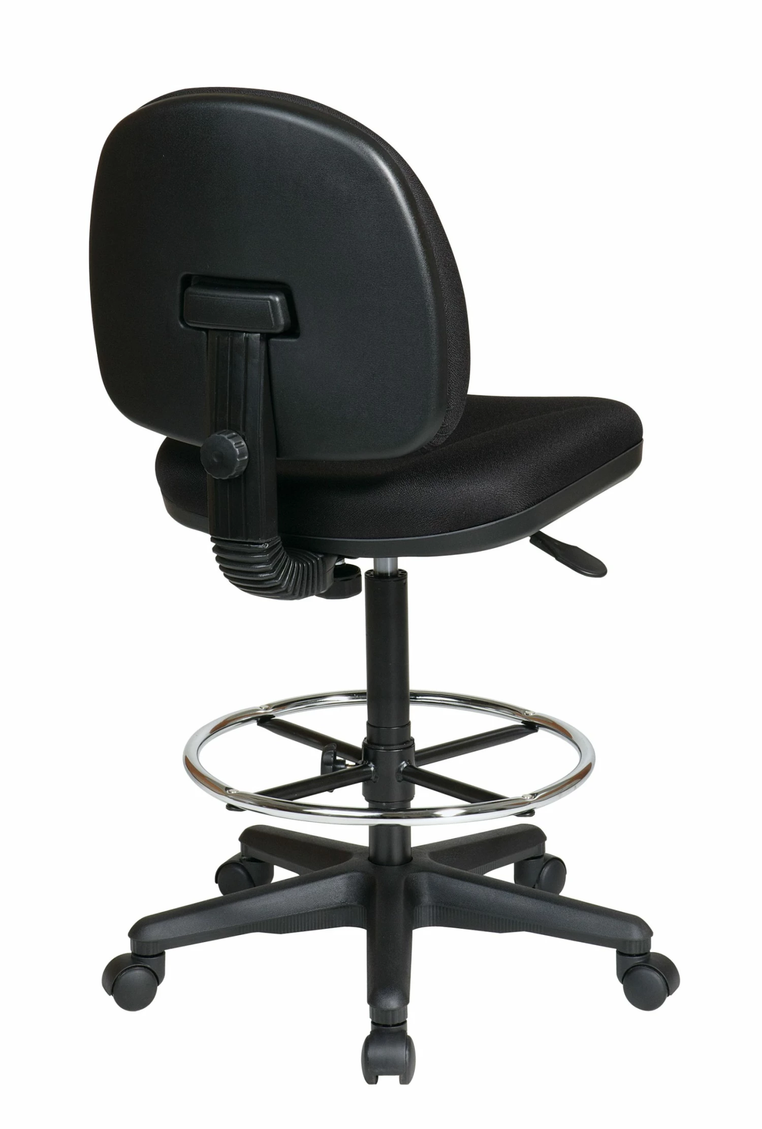 Drafting Chair with Stool Kit (5 inches of Travel). Fabric Seat and Back Drafting Chair with Adjustable Foot ring. Pneumatic Height Adjustment. Heavy Duty Nylon Base with Dual Wheel Carpet Casters