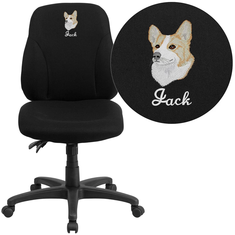 This multi-functional office chair features a triple paddle control to adjust the seat height, back angle and tilt lock. This chair offers great comfort benefits when having to sit for long periods at a time. A mid-back office chair offers support to the mid-to-upper back region. This chair is ideal for anyone who does a great deal of typing throughout the day and needs good back support. The locking back angle adjustment lever changes the angle of your torso to reduce disc pressure. Chair easily swivels 360 degrees to get the maximum use of your workspace without strain. The pneumatic adjustment lever will allow you to easily adjust the seat to your desired height. Personalize this chair with custom text or a logo to show off your individual style or company design.