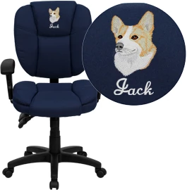 This multi-functional office chair will give you an edge on comfort with its design and adjusting capabilities. This office chair features fabric upholstery to comfortably get you through your work day or to keep you comfortable while browsing the internet. The contoured seat dissipates pressure points for greater comfort. A mid-back office chair offers support to the mid-to-upper back region. The locking back angle adjustment lever changes the angle of your torso to reduce disc pressure. The locking synchro tilt control allows the chair’s back and seat to recline at different rates, increasing the angle between your torso and thighs. The waterfall front seat edge removes pressure from the lower legs and improves circulation. Chair easily swivels 360 degrees to get the maximum use of your workspace without strain. The pneumatic adjustment lever will allow you to easily adjust the seat to your desired height. The adjustable armrests take the pressure off the shoulders and the neck, which minimizes the risk of pain. Personalize this chair with custom text or a logo to show off your individual style or company design.