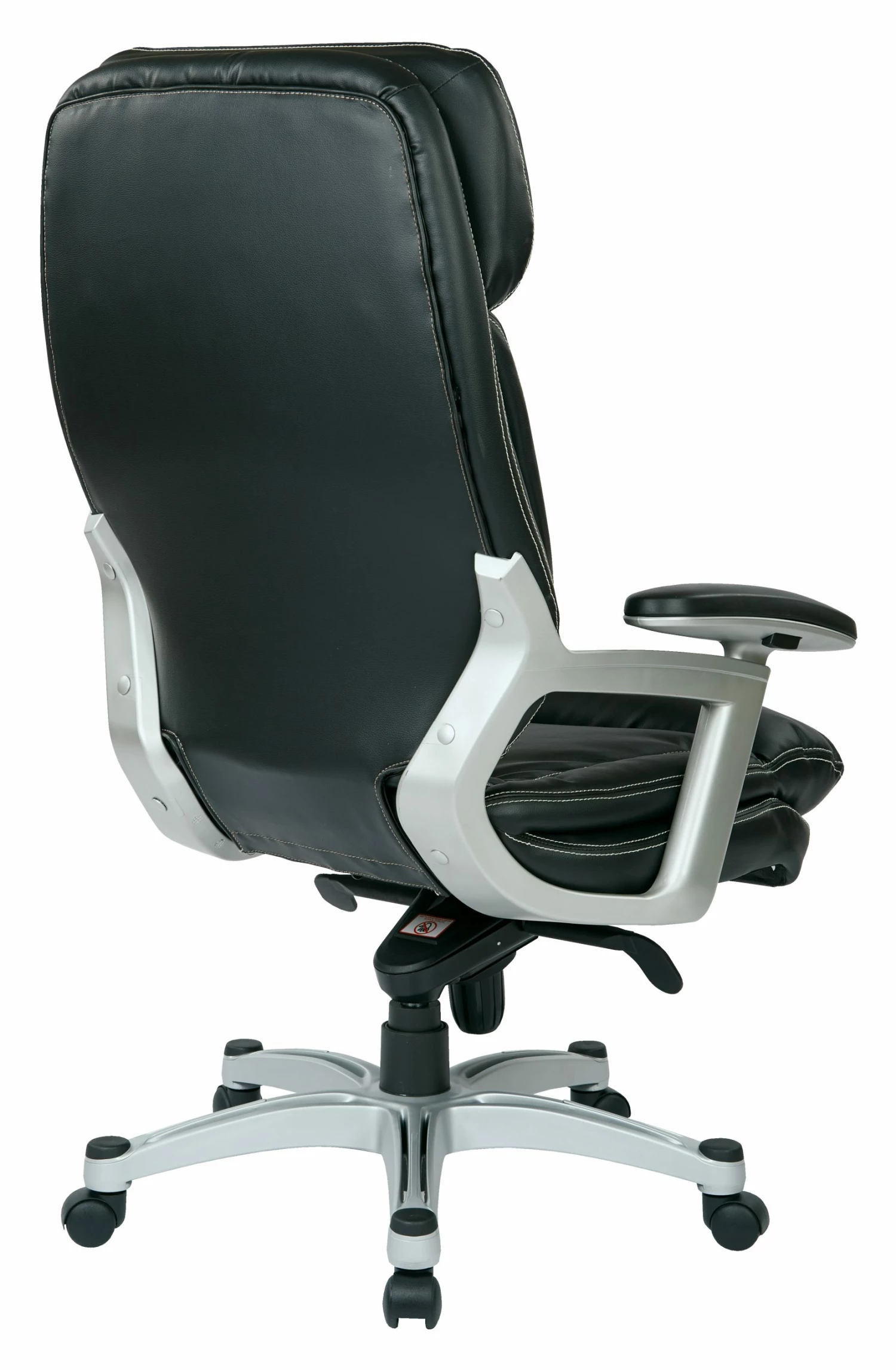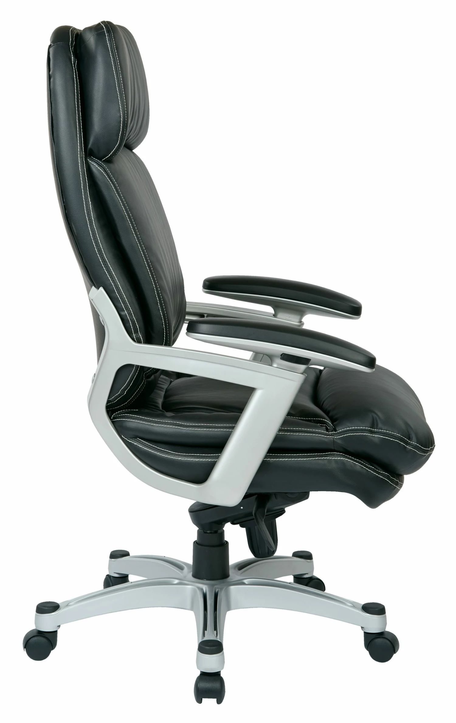 Executive Bonded Leather Chair with Padded Arms and Coated Base (Silver/Black)