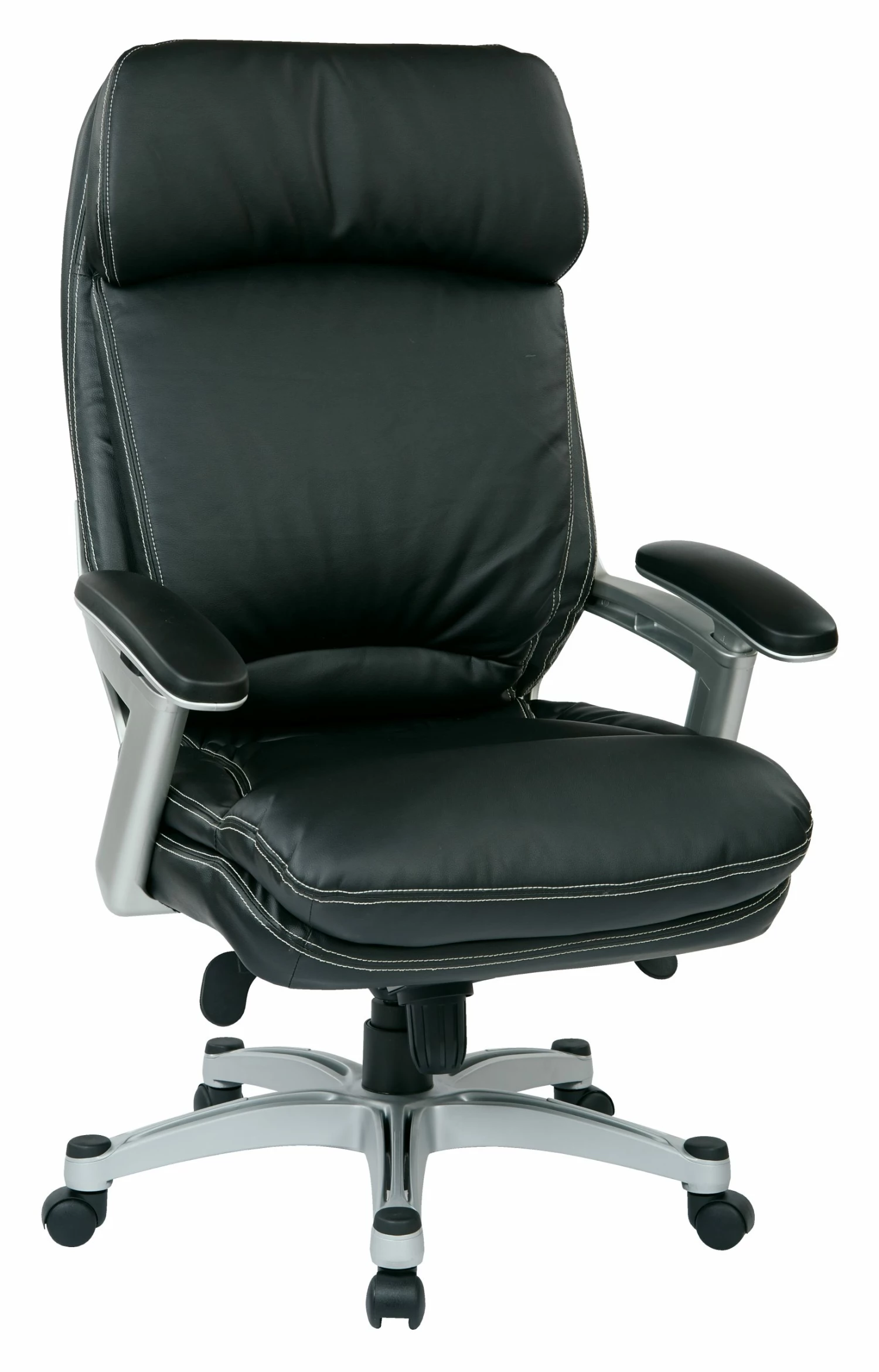 The comfort of a pillow top bed in the guise of an office chair, the all new Executive Bonded Leather Chair w/ Padded Arms and Coated Base by WorkSmart lets you work in supreme relaxation. Intelligently wrapped in environmentally friendly Bonded Leather, the reengineered upholstery in this seating solution is as good for the environment as it is for your wallet. Generously padded and constructed with a built-in lumber support, the chair helps you tackle any task your workday deals you. An adjustable tilt tension coupled with an intuitive knee tilt control makes this chair as sensitive to your movements as it is to your budget. Easy elevation adjustment via a pressurized seat hydraulic keeps you at the perfect level for your stature while the padded height adjustable arms allow you to relax your hands betwixt emails and meetings. A heavy duty silver coated base with dual wheel carpet casters allow you to move about your office effortlessly. Finished with a protective powder coating, this chair will remain looking dapper in your workspace for years to come.