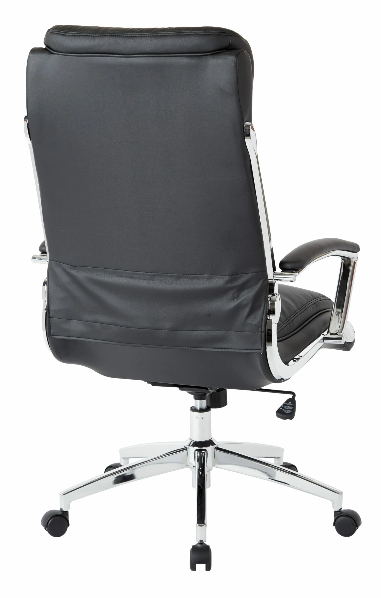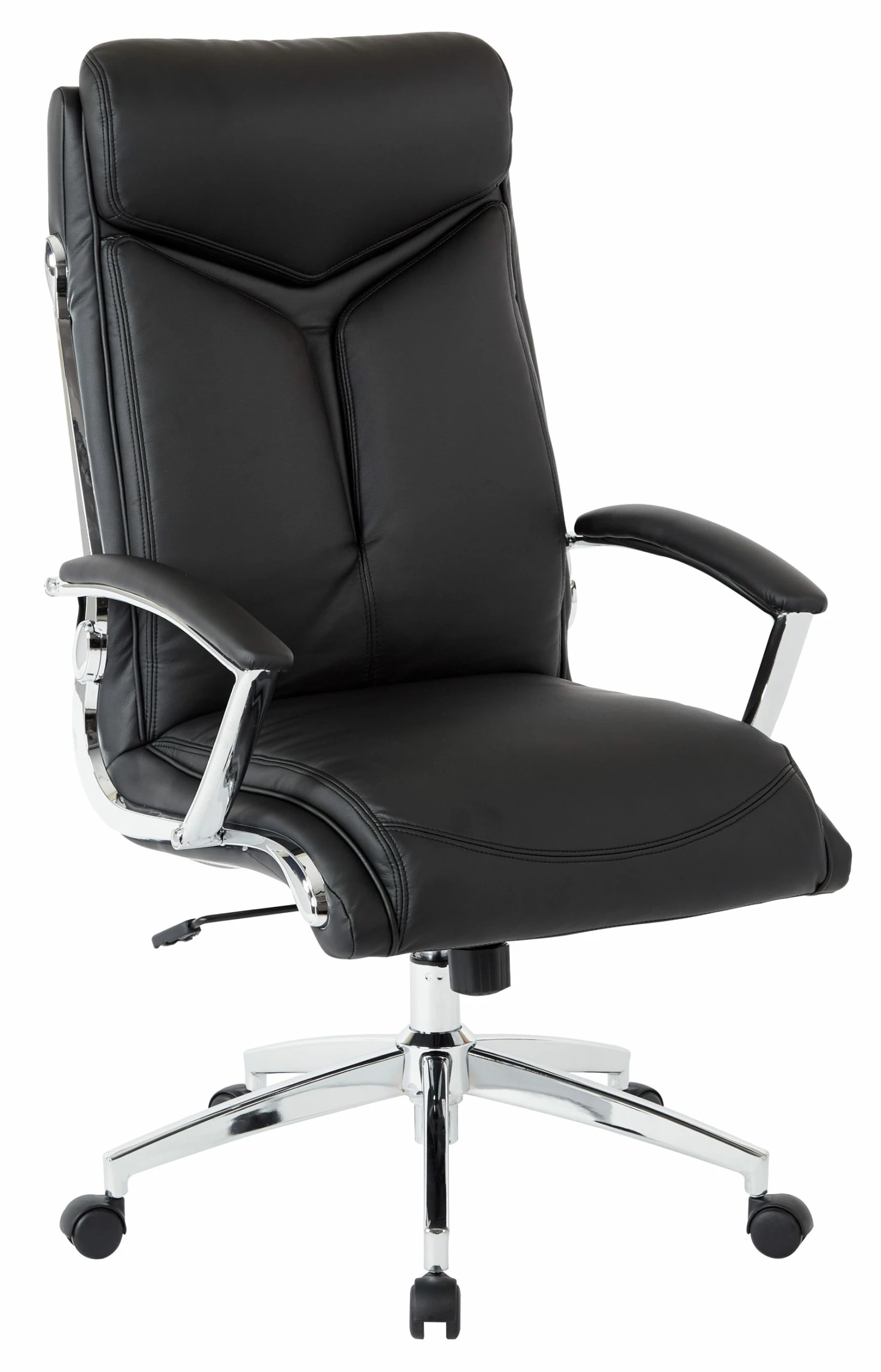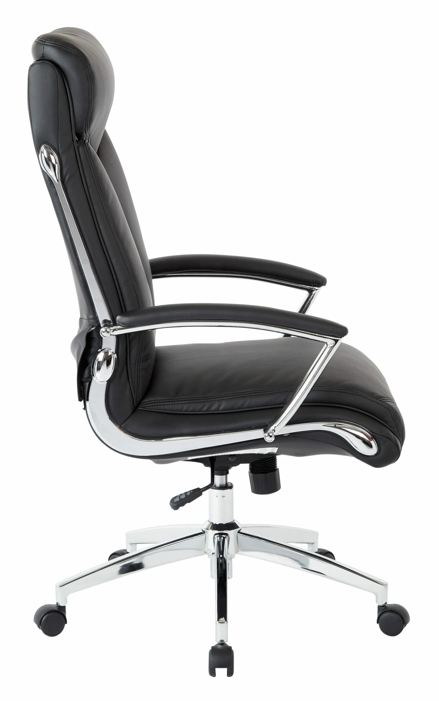 Executive Faux Leather High Back Chair with Padded Arms and Chrome Finish Base