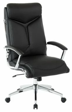 Luxuriously modern. Get head to toe support throughout the work day with this faux leather office chair designed for the modern workplace. Enjoy the comfort of a high back with built in lumbar support and a supportive head rest, along with padded armrests for a relaxed seating experience. The pneumatic seat height adjustment and tilt controls make it easy to customize this chair to your needs, while the chrome accents add a stylish flair. Maximize your productivity with the Work Smart Executive Chair.