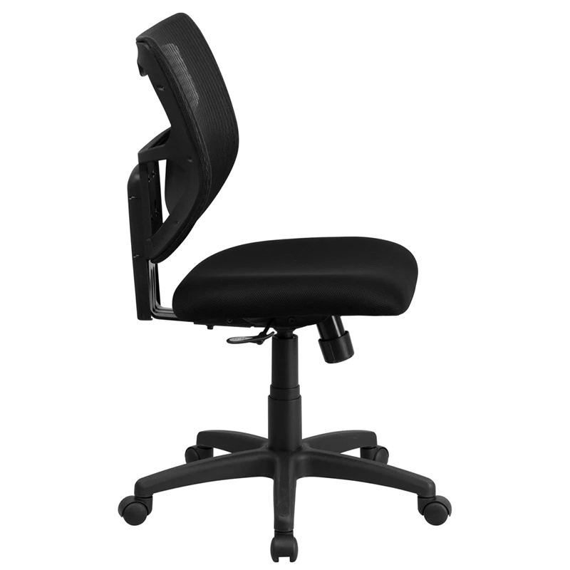 Mesh office chairs can keep you more productive throughout your work day with its comfort and ventilated design. The contoured, breathable mesh material allows air to circulate to keep you cool while sitting. The mid-back design offers support to the mid-to-upper back region. The synchro tilt control allows the chair’s back and seat to recline at different rates, increasing the angle between your torso and thighs. The waterfall front seat edge removes pressure from the lower legs and improves circulation. Chair easily swivels 360 degrees to get the maximum use of your workspace without strain. The pneumatic adjustment lever will allow you to easily adjust the seat to your desired height. From behind the desk to the meeting room this chair can provide a seamless addition to your work space.