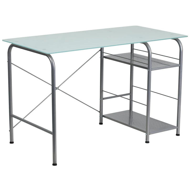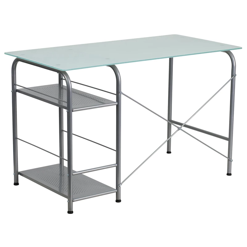 This computer desk features a glass work surface and open storage for your CPU and other materials. Investing in a desk for your home makes working from home or managing household bills and paperwork a nicer experience.