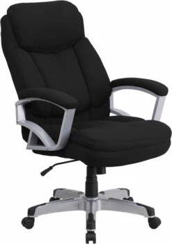 Finding a comfortable chair is essential when sitting for long periods at a time. Big & Tall office chairs are designed to accommodate larger and taller body types. This chair has been tested to hold a capacity of up to 500 lbs., offering a broader seat and back width. High back office chairs have backs extending to the upper back for greater support. The high back design relieves tension in the lower back, preventing long term strain. This office chair features plenty of thick, plush padding to provide greater support. The waterfall front seat edge removes pressure from the lower legs and improves circulation. Chair easily swivels 360 degrees to get the maximum use of your workspace without strain. The pneumatic adjustment lever will allow you to easily adjust the seat to your desired height. The silver nylon capped metal base with black caps prevents feet from slipping when resting on chairs base.