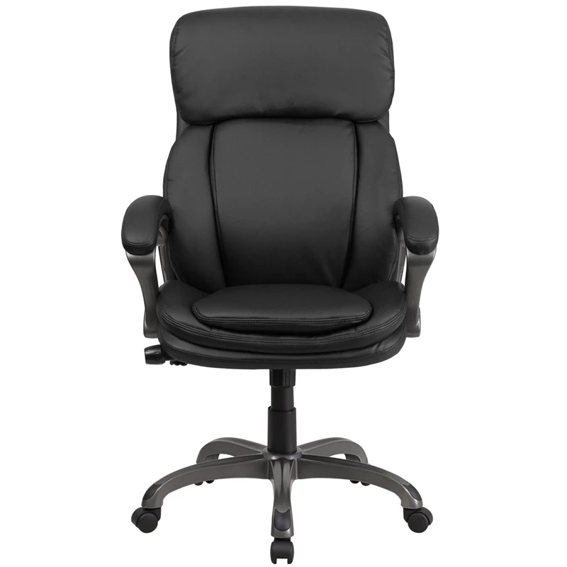 Get your day going with this contemporary executive office chair that boosts titanium finishes. Having the support of an ergonomic office chair may help promote good posture and reduce future back problems or pain. High back office chairs have backs extending to the upper back for greater support. The high back design relieves tension in the lower back, preventing long term strain. The tilt lock mechanism offers a comfortable rocking/reclining motion. The free range motion is great for taking a quick break from typing for phone calls and relaxing. The most valuable feature of this chair is the controlled lumbar knob that allows you to increase and decrease the pressure provided to your back. Chair easily swivels 360 degrees to get the maximum use of your workspace without strain. The pneumatic adjustment lever will allow you to easily adjust the seat to your desired height. The titanium nylon base with black caps prevents feet from slipping when resting on chairs base.