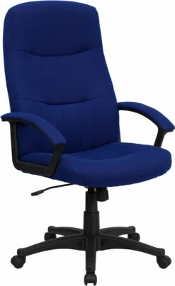 This fabric upholstered office chair features padded arms along with the horizontal line tufting. High back office chairs have backs extending to the upper back for greater support. The high back design relieves tension in the lower back, preventing long term strain. The waterfall front seat edge removes pressure from the lower legs and improves circulation. Chair easily swivels 360 degrees to get the maximum use of your workspace without strain. The pneumatic adjustment lever will allow you to easily adjust the seat to your desired height.