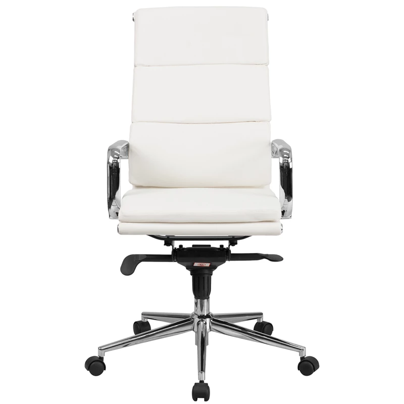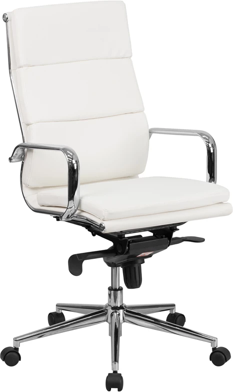 This contemporary office chair has an eye appealing design with chrome features. High back office chairs have backs extending to the upper back for greater support. The synchro tilt control allows the chair’s back and seat to recline at different rates, increasing the angle between your torso and thighs. Chair easily swivels 360 degrees to get the maximum use of your workspace without strain. The pneumatic adjustment lever will allow you to easily adjust the seat to your desired height. Make a statement in your office with this contemporary leather office chair.