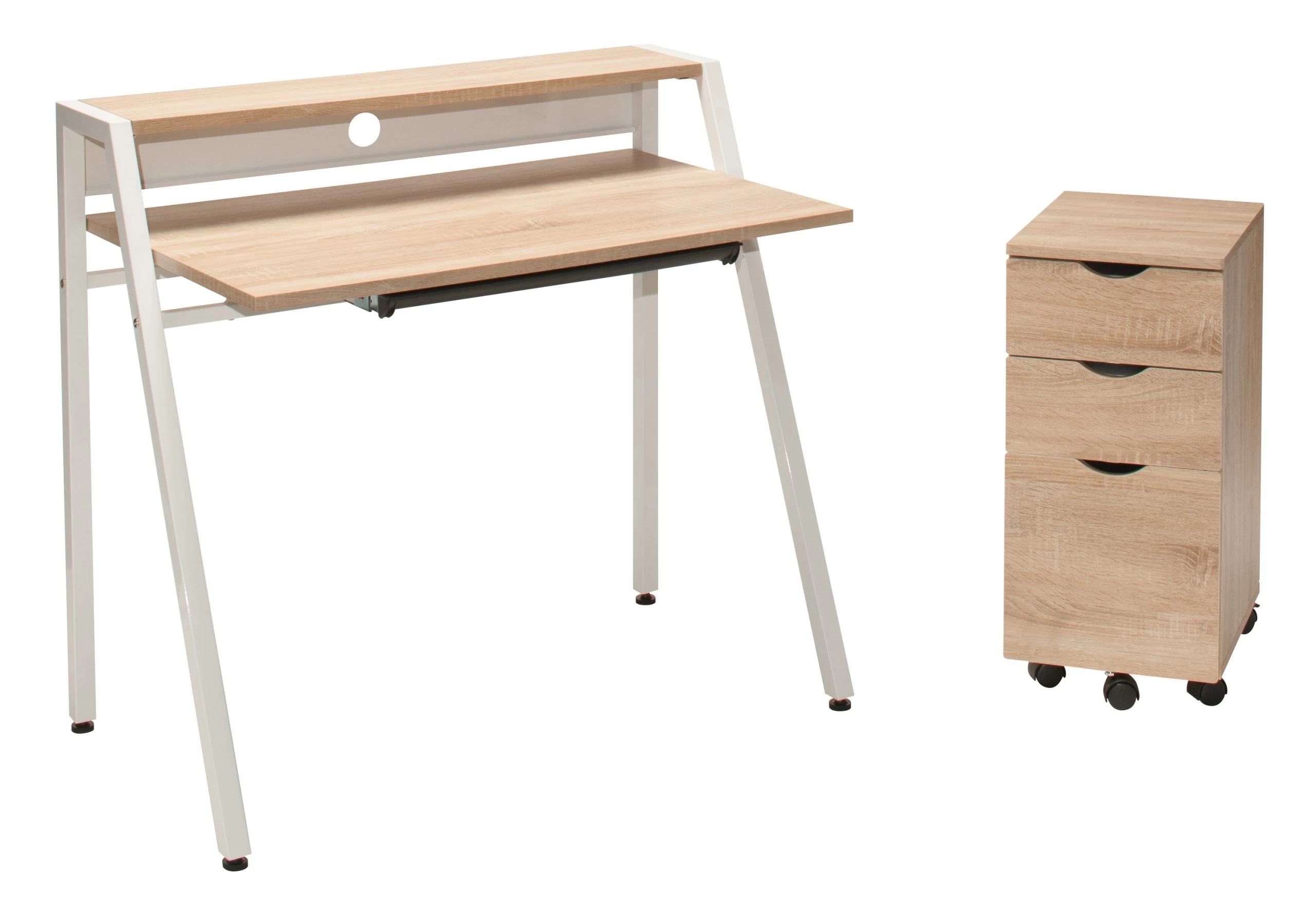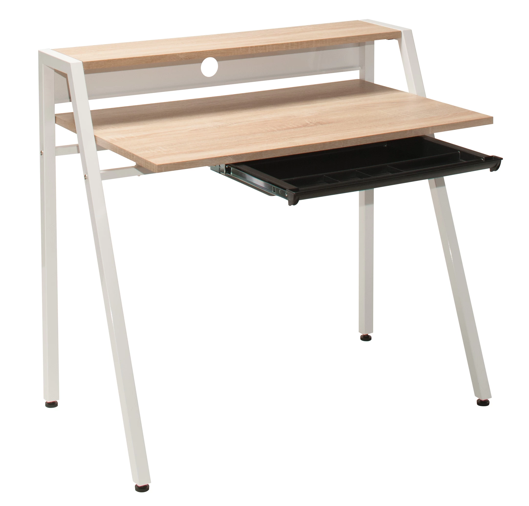 No student nook or working space is complete without the sophistication and professionalism of the Kent writing desk. Studying, writing, crafting, and so much more are easily accomplished on a desk spacious enough for working, yet compact enough to accommodate small home or business spaces. A pull-out keyboard tray saves space when the wood surface is occupied by a personal computer, and a second tier shelf supported by a sturdy and durable metal frame is perfect for additional working supplies or decorative objects.?
