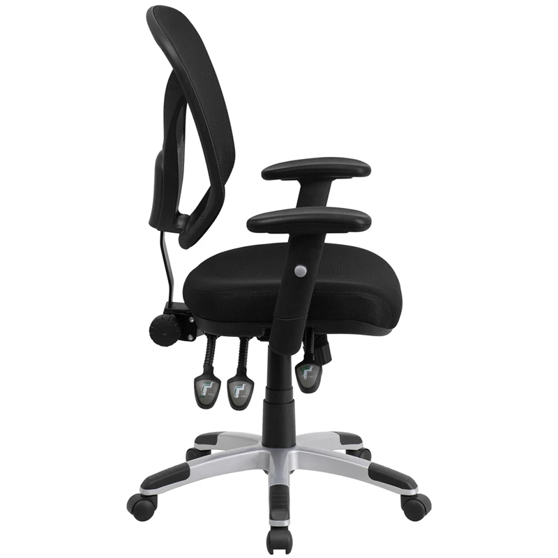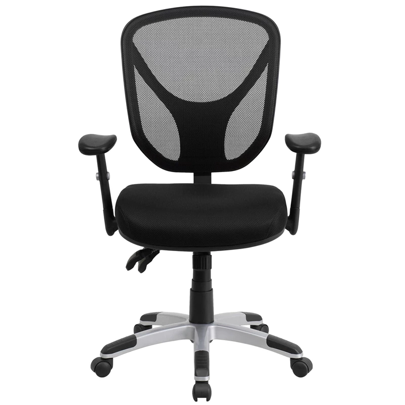 If you’re looking for an easy to adjust office chair than this triple paddle chair is an excellent choice. Mesh office chairs can keep you more productive throughout your work day with its comfort and ventilated design. The contoured seat dissipates pressure points for greater comfort. The mid-back design offers support to the mid-to-upper back region. The locking back angle adjustment lever changes the angle of your torso to reduce disc pressure. The locking tilt mechanism allows you to lock your chair in a comfortable work position. The waterfall front seat edge removes pressure from the lower legs and improves circulation. Chair easily swivels 360 degrees to get the maximum use of your workspace without strain. The pneumatic adjustment lever will allow you to easily adjust the seat to your desired height. The adjustable armrests take the pressure off the shoulders and the neck, which minimizes the risk of pain. This comfortably designed computer chair will make a great option for your home or office space.