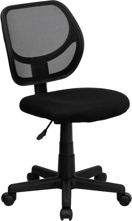 This mesh task chair supports you in comfort when you’re working long hours to get the job done, in your dorm, at the office and at home.The transparent mesh back allows air to circulate, keeping you cool no matter how high the pressure gets. The swivel seat is padded with 2 inches of CA117 fire retardant foam and covered with black mesh upholstery. Built-in lumbar support helps prevent back strain and muscle fatigue. Raise and lower the seat using the pneumatic seat height adjustment lever, conveniently located below the seat. The heavy-duty, nylon base with dual wheel casters makes it easy to roll across the floor.Whether you’re sitting in class, studying for a final exam or working to beat a tight deadline, this stylish chair will keep you cool and comfortable throughout your busy day.