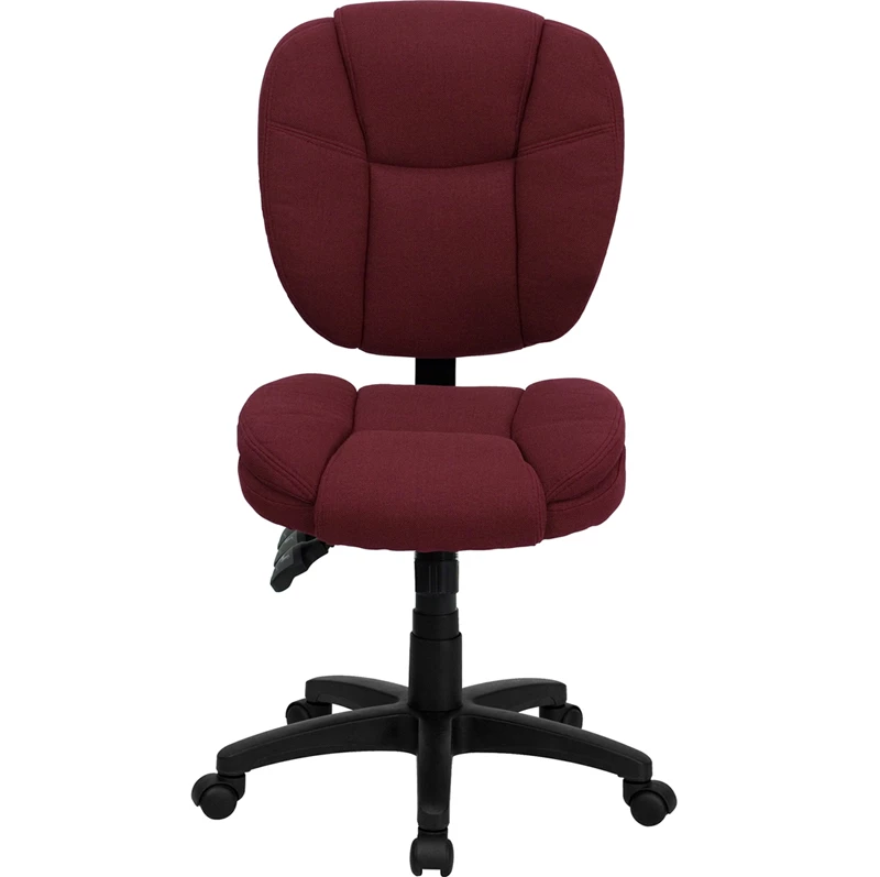 This multi-functional office chair will give you an edge on comfort with its design and adjusting capabilities. This office chair features fabric upholstery to comfortably get you through your work day or to keep you comfortable while browsing the internet. The contoured seat dissipates pressure points for greater comfort. A mid-back office chair offers support to the mid-to-upper back region. The locking back angle adjustment lever changes the angle of your torso to reduce disc pressure. The locking synchro tilt control allows the chair’s back and seat to recline at different rates, increasing the angle between your torso and thighs. The waterfall front seat edge removes pressure from the lower legs and improves circulation. Chair easily swivels 360 degrees to get the maximum use of your workspace without strain. The pneumatic adjustment lever will allow you to easily adjust the seat to your desired height.