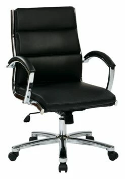 Mid Back Executive Black Faux Leather Chair with Polished Aluminum Finish Padded Arms and Base