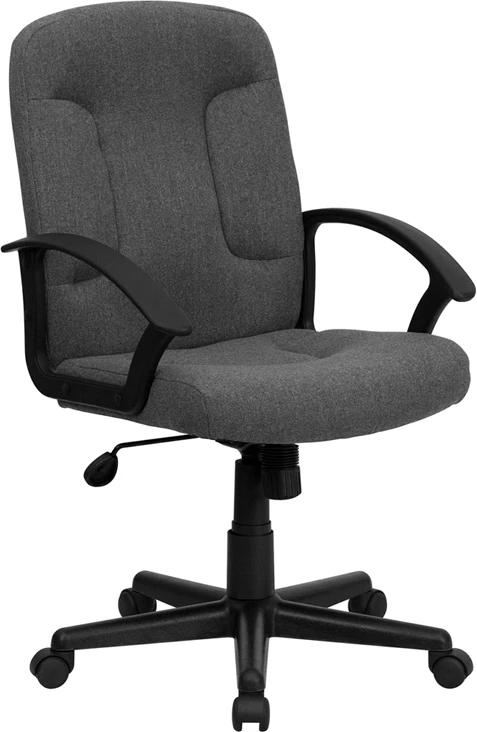 Get comfortable in this office chair while you check off the items on your ”To-Do” list.The swivel seat is padded with 5 inches of CA117 fire retardant foam and the chair is covered with fabric upholstery. Nylon armrests take pressure off your shoulders and neck. Use the tilt tension adjustment knob to increase or decrease the amount of force needed to rock and recline. Lock the position in place with the tilt lock mechanism. Raise and lower your seat height with the pneumatic seat height adjustment lever, conveniently located below the seat. The heavy-duty, nylon base with dual wheel casters makes it easy to roll across the floor.When you want a great home or office chair, offering comfort, style and functionality, this attractive office chair is a great choice.