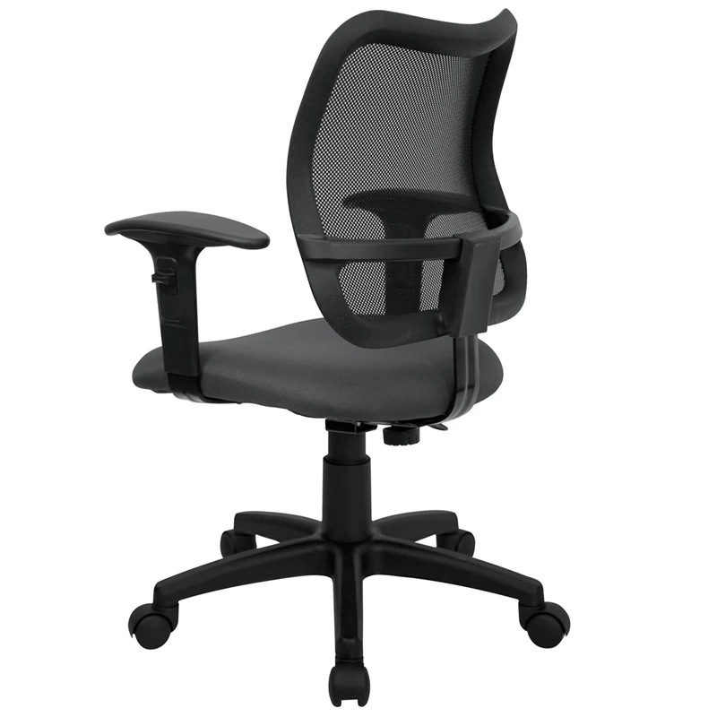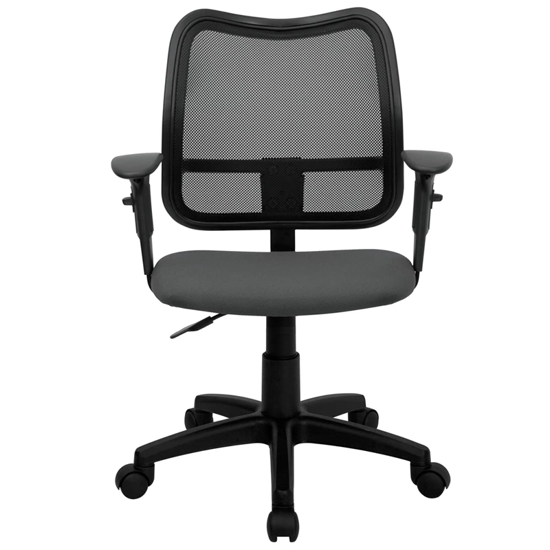 Mesh office chairs can keep you more productive throughout your work day with its comfort and ventilated design. The breathable mesh material allows air to circulate to keep you cool while sitting. Finding a comfortable chair is essential when sitting for long periods at a time. The mid-back design offers support to the mid-to-upper back region. The contoured backrest provides firm back support allowing your back to rest comfortably. The waterfall front seat edge removes pressure from the lower legs and improves circulation. Chair easily swivels 360 degrees to get the maximum use of your workspace without strain. The pneumatic adjustment lever will allow you to easily adjust the seat to your desired height. The adjustable armrests take the pressure off the shoulders and the neck, which minimizes the risk of pain. From behind the desk to the meeting room this chair can provide a seamless addition to your work space.