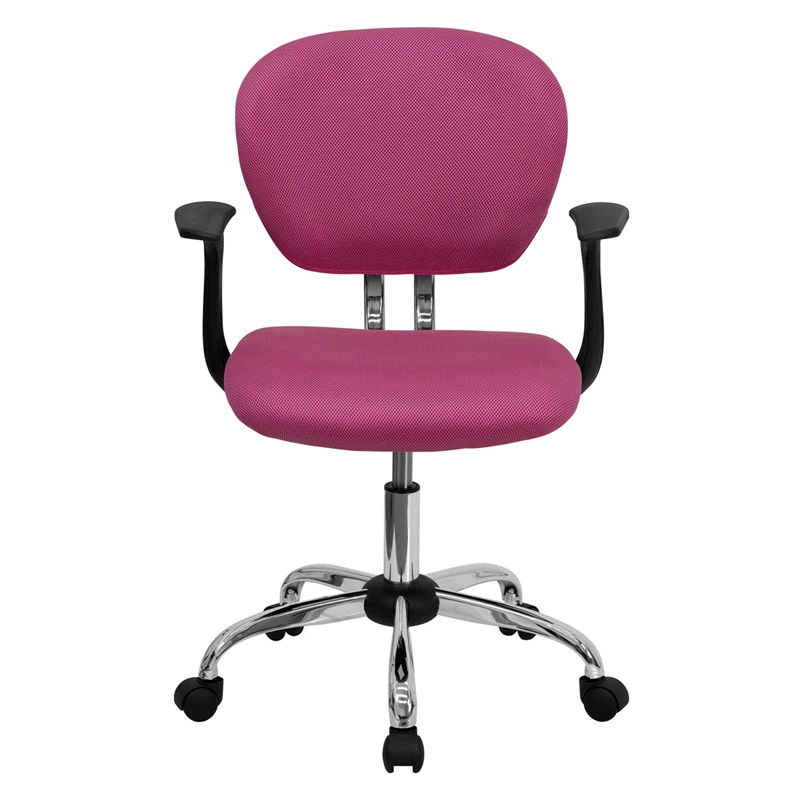 This mesh task chair supports you in comfort when you’re working long hours to get the job done.It features a mid-back design to support your mid-to-upper back region. The swivel seat and back are padded with 2 inches of CA117 fire retardant foam and covered in mesh upholstery. Raise and lower the seat using the pneumatic seat height adjustment lever, conveniently located under the seat. A heavy-duty, chrome base with dual wheel casters makes it easy to roll across the floor.Whether you’re sitting in class, studying for a final exam or working to beat a tight deadline, this stylish chair will keep you cool and comfortable throughout your busy day.