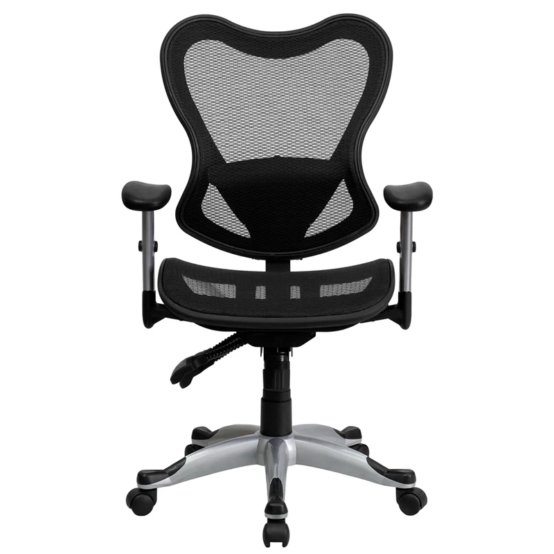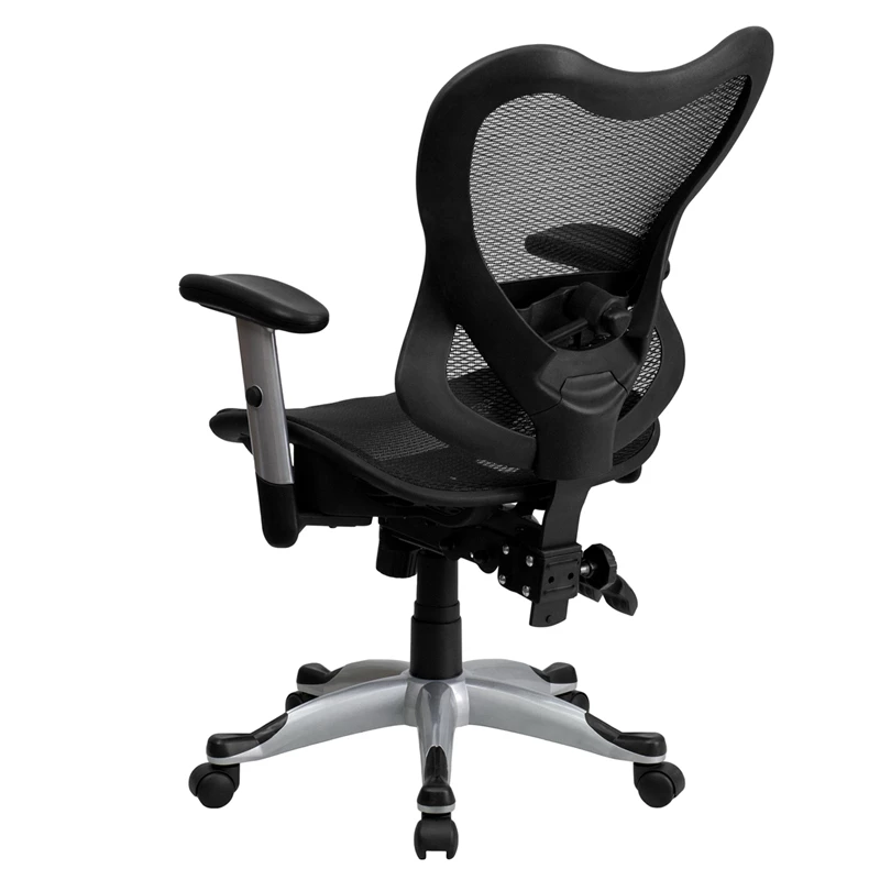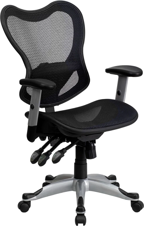 If you’re looking for an easy to adjust office chair than this triple paddle chair is an excellent choice. Mesh office chairs can keep you more productive throughout your work day with its comfort and ventilated design. This chair features transparent, breathable mesh material that allows air to circulate. The mid-back design offers support to the mid-to-upper back region. The locking back angle adjustment lever changes the angle of your torso to reduce disc pressure. The waterfall front seat edge removes pressure from the lower legs and improves circulation. Chair easily swivels 360 degrees to get the maximum use of your workspace without strain. The pneumatic adjustment lever will allow you to easily adjust the seat to your desired height. The adjustable armrests take the pressure off the shoulders and the neck, which minimizes the risk of pain. This comfortably designed computer chair will make a great option for your home or office space.