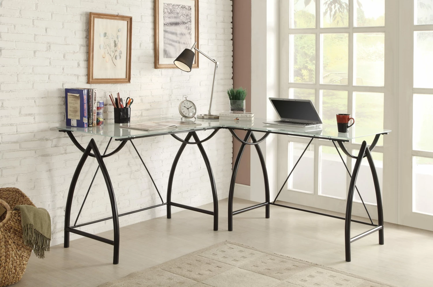 Newport L-Shape Computer Desk with Black Powder Coated Steel Frame