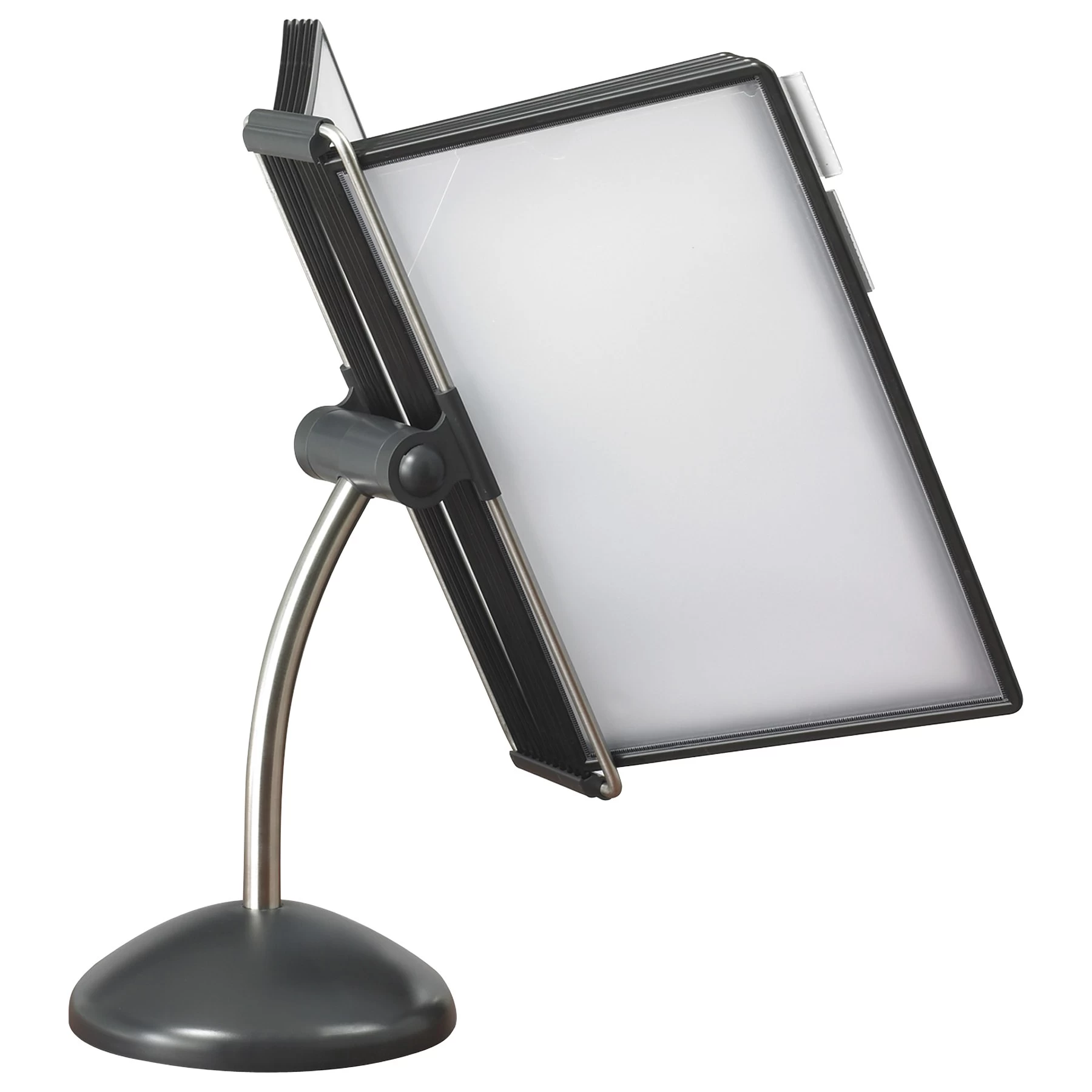 This desktop reference system does it all! The sleek design is completely positionable and keeps frequently used documents available for quick access. Easily change the viewing angle to fit your needs or rotate it to show a colleague.
