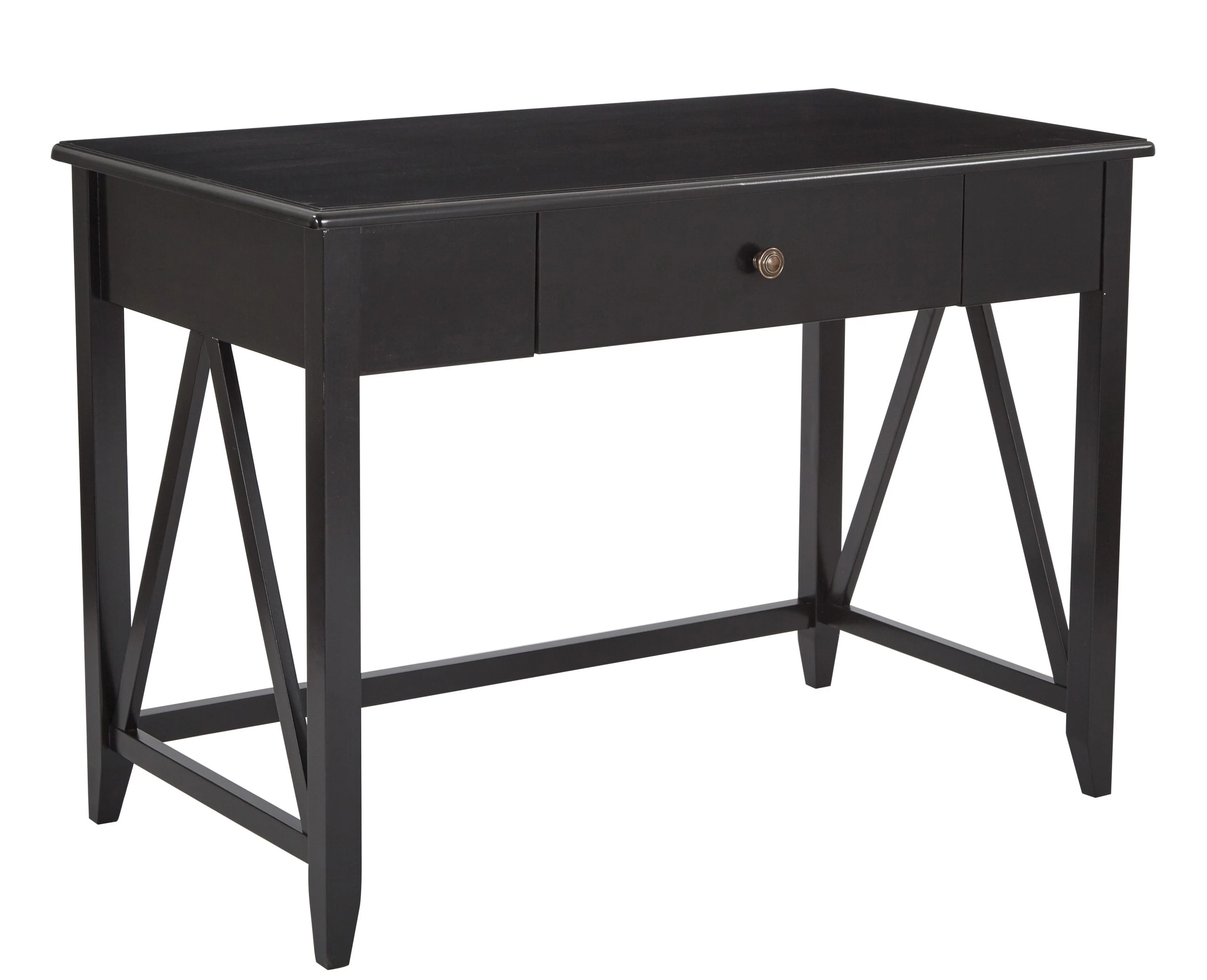 Home office style. The classic writing desk, gets a modern update with cross beam accented legs in this contemporary desk design. Enjoy the large work surface for writing thank you notes or working from your laptop, and keep your office supplies close at hand with the front side storage drawer. Dress up your home office with the Santa Cruz writing desk.