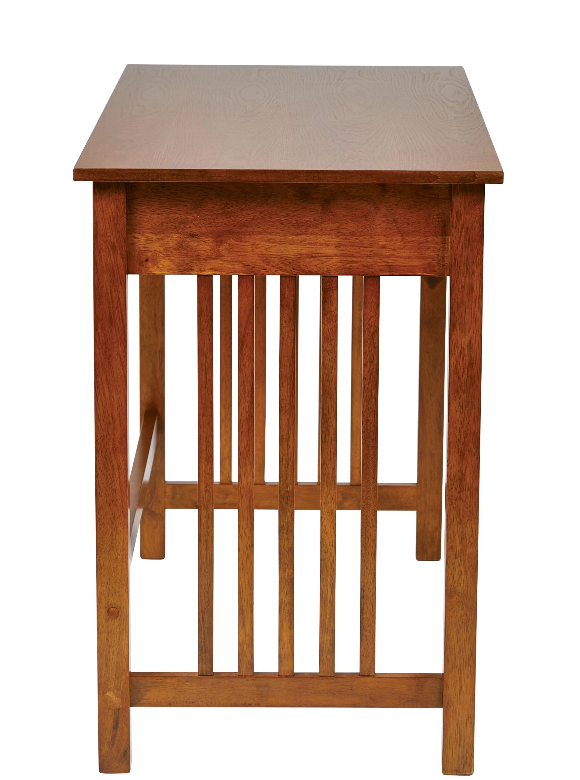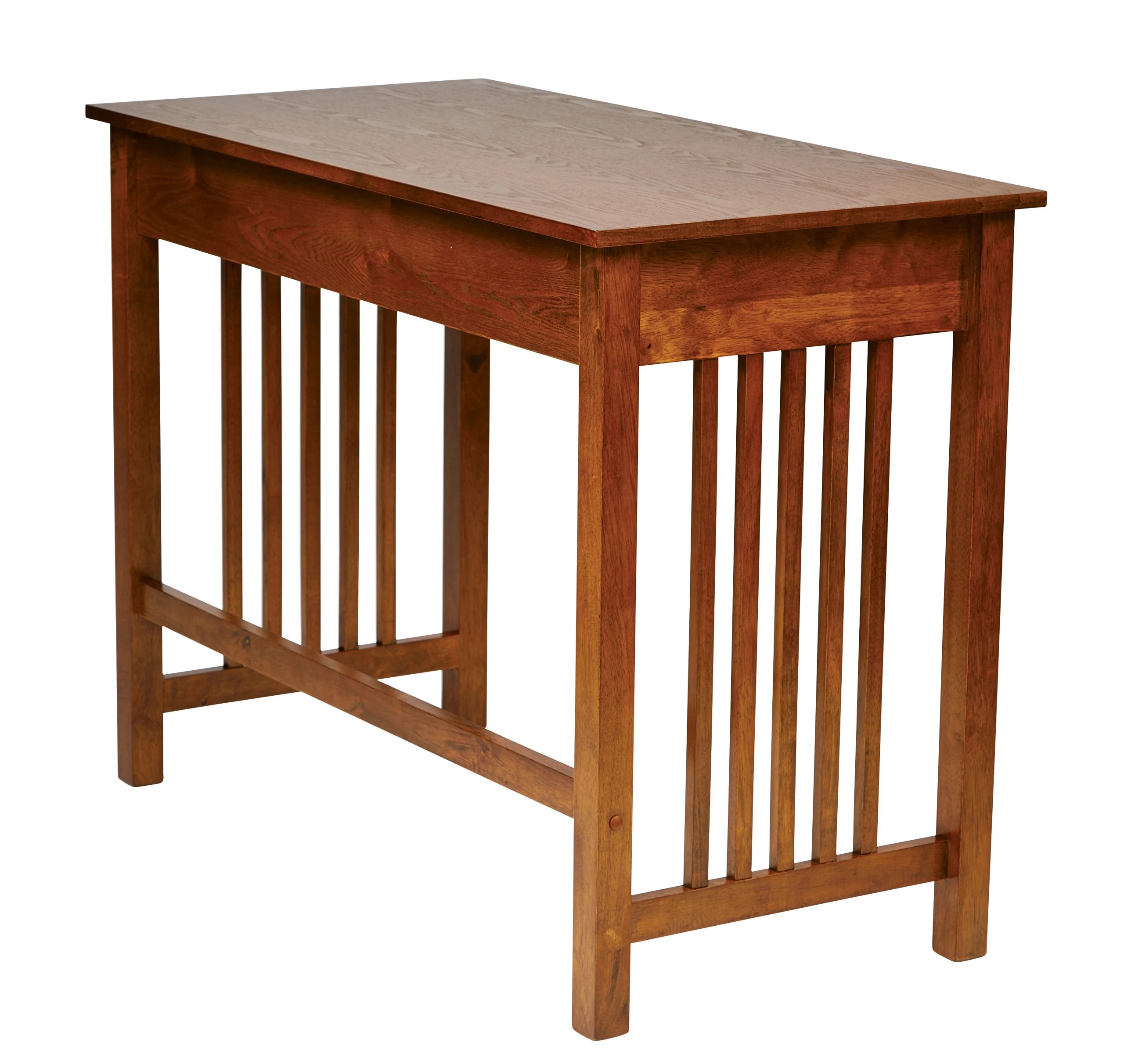 Imagine how impressed your friends will be when they see the new Sierra Mission Desk in your home office. Certain to proclaim your taste for serious style; this craftsman style desk is a winner on so many levels. Envision this mature yet down-home desk housing your tablets, paperwork or laptop as you sit before it in classic style. Studies have proven that more than half of American workers judge others on how clean or dirty their workspaces are, but with an Oak finish in an Ash Stain, this desk is easy to clean and is outfitted with an attractive metal handle drawer to keep your documents and pens in the perfect place. Whether you homes style is mature and Transitional, urban and Contemporary, or cultured and Cosmopolitan, the all new Sierra Mission Desk is the perfect style statement for your décor that is as attractive as it is affordable. Add to cart now and start enjoying this precocious specimen of home office chattel for years to come.