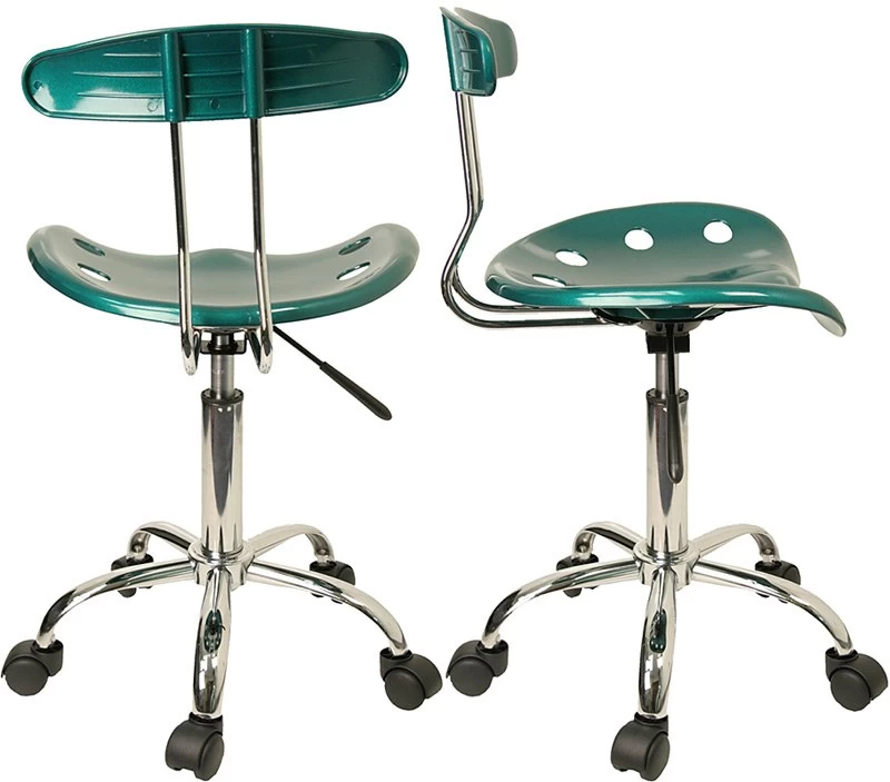 Change up the look in your home office with this colorful vibrant task chair. The molded tractor seat offers a tremendous amount of comfort. Chair rotates 360 degrees to provide easy access to a greater range of area. The pneumatic adjustment lever will allow you to easily adjust the seat to your desired height. Dual wheel casters provide ease of movement around the space. The small frame of this chair will not take up a lot of space if working in a small area.